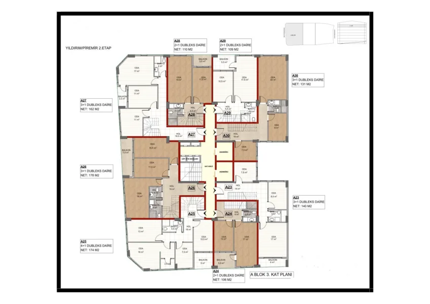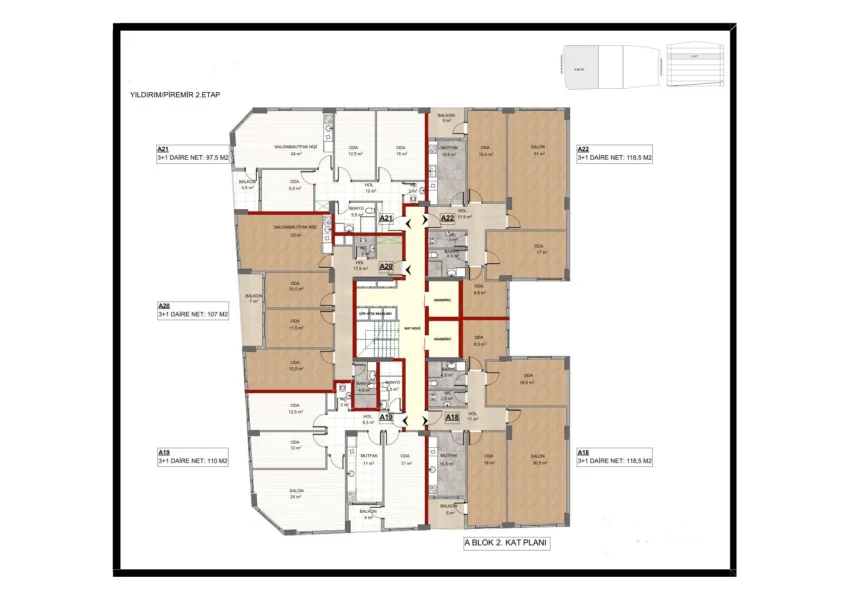 - – Farklı m2 daire seçenekleri